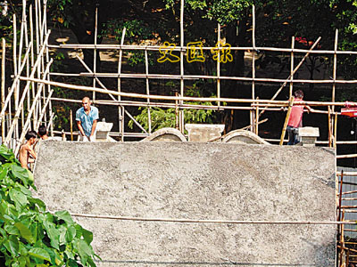 ■工人正在修葺常寂園的頂部。(大埔梅樹坑)