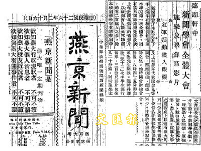 《燕京新聞》非常有趣,我掃描了一份報頭和1937年2月9日的報道,請70年後的人們一起來看看吧!