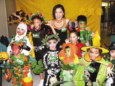 【本報訊】周麗淇昨日出席將軍澳中心的「森林之幽扮野大賽」,為了配合萬聖節,一班小朋友扮鬼扮馬參加比賽,周麗淇擔任評判,可能小朋友比較害羞,所以其中有一位小朋友馬鬼地拒絕與周麗淇合照,搞到她不知好嬲定好笑。
