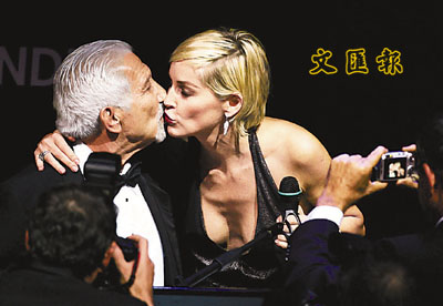 徐娘半老但魅力依然的莎朗史東(圖右),前晚為她擔任主持、多年來一直力撐的愛滋病研究基金晚會發揮美人本色,和往年同樣拍賣多款藝人珍藏品,結果她便向投得其頸鏈的男性送上熱吻,連同這筆款項全晚共籌得約310萬港元。既然是衣香鬢影的場合,當然會有其他美女參加,包括捷克名模Eva Herzigova和以色列超模亦即里奧仔的舊愛Bar Rafaeli等人,全部都是明艷動人。■文:藝能小子/圖:法新社