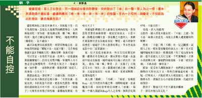 怪哉,西人所能夠自控的,國人卻是不能自控。「不能」之說,倒不是一兩個人的意見,而是大多數人遭責難時的解釋。