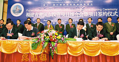 ■今年9月,莆田市在廈門舉辦推介會,與眾多莆商和外商簽下數億金額的投資項目。 本報記者米南 攝