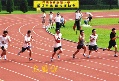 【本報訊】踏入秋天,又是中學舉行運動會的日子,廠商會蔡章閣中學於本月12及15日在天水圍田徑運動場舉行了該校第23屆田徑運動會。雖然運動會首日受天雨影響,但運動員仍如常完成比賽,看台上的「啦啦隊」亦施展渾身解數為健兒打氣,口號、歌聲此起彼落,運動會不但順利完成,現場氣氛亦十分熱烈。