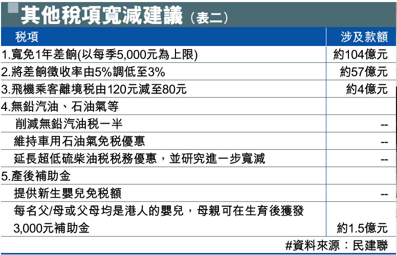 民建聯就薪俸稅提出的各項建議(表一) (圖)