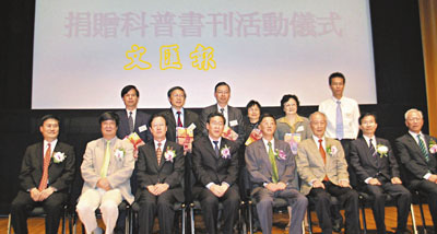 【本報訊】(記者 潘曉平)香港科技界慶祝香港回歸祖國活動委員會,日前向培正中學、培僑中學、聖保羅男女中學、嘉諾撒聖家書院、九龍華仁書院、福建中學一共6間名校捐贈數萬港元,用於購買科普書刊,當日適逢「當代傑出華人科學家公開講座2007」在香港科學館舉行,捐款儀式安排在講座前舉行,由科技界慶委會執行主席唐一柱、中聯辦教科部副部長李凌、國家科協國際部副部長李秀亭、京港學術交流中心總裁李乃堯一同主持。