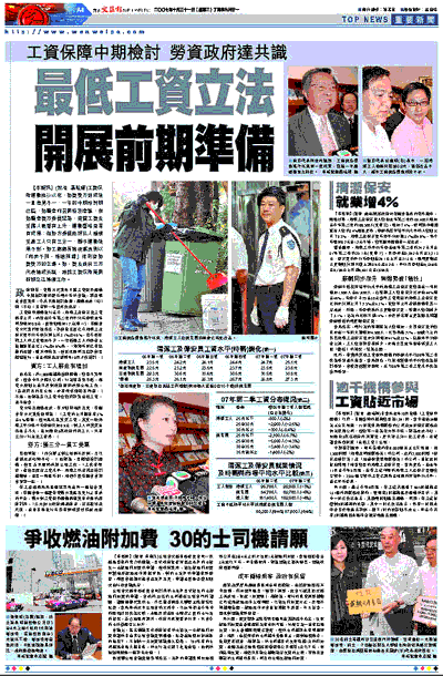 【本報訊】(記者 聶曉輝)工資保障運動推行以來,勞資雙方對成效一直意見不一,一年的中期檢討期已屆,勞顧會昨召開特別會議,有勞顧會資方委員認為,實質工資及受僱人數都有上升,運動暫時算是有成果;但勞方委員批評私人機構受惠工人只有三分一,顯示運動效果不彰。勞工處處長謝凌潔貞則以「和而不同、殊途同歸」來形容勞資雙方的立場。勞、資及政府三方代表達成共識,將就工資保障展開前期立法準備工作。