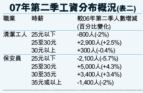 清潔工及保安員就業情況及時薪與市場平均水平比較(表三) (圖)