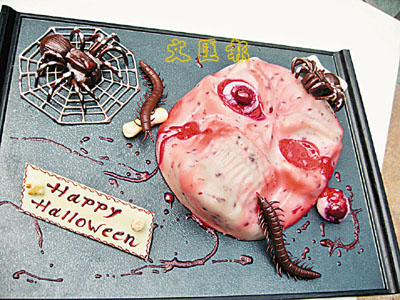 ■樣貌恐怖的「驚心動魄」原來是紅豆糕,眼珠是車厘子釀入荔枝肉,再以紅莓汁製成的「鮮血」點綴。