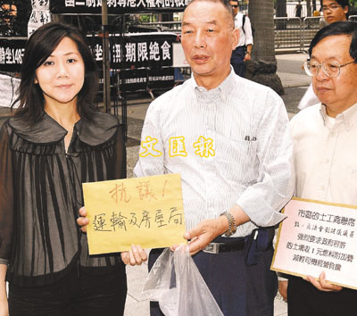 立法會交通事務委員會昨討論的士業界要求徵收的士燃油附加費的申請,會前約30名的士司機在立法會門外請願。請願團體代表的士、小巴權益關注大聯盟主席黎銘洪批評,當局早前交予立法會的文件中,以04年初至今年中的經濟狀況作為比較,未能反映在沙士肆虐之後的士行業的慘況,若石油氣再調升,政府不再規管折扣黨,只會令的士的營運百上加斤。