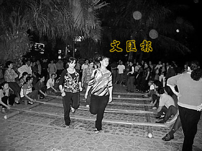 最先自發組織起來的是一群老年人,他們的初衷是自娛自樂、鍛煉身體。後來,縣委書記葉翠萍順勢而為,安排財政劃撥一定資金,為活動點裝上燈光、添置必要器材;並帶領縣裡相關部門的領導,不時到活動點看看,給予一些支持。一個個活動點陸續建立起來,河口也多了一道別樣的城市風景。