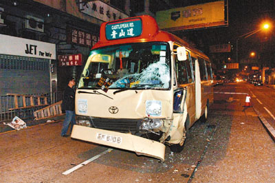 ■險遭唐裝賊偷走的小巴,在元州街失事撞毀。