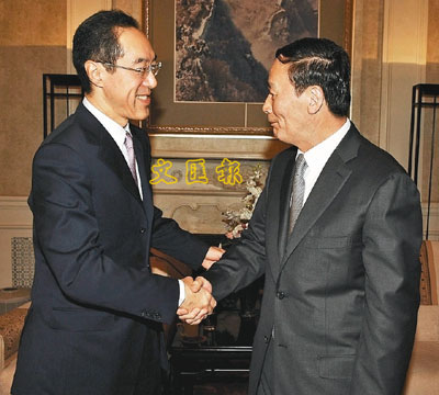 ■唐英年與北京市長王岐山會面,雙方就加強文化交流達成共識。
