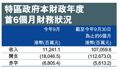 特區政府本財政年度首6個月財務狀況 (圖)