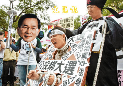 ■陳水扁「入聯公投」的分裂行徑不得民心,島內「反公投入聯行動聯盟」日前以行動表達堅決反對的訴求。中央社