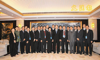 ■俞正聲與香港新聞工作者聯會成員合影。肖智 攝