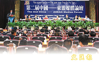 2007年11月2日,香港《文匯報》以及泰華報人基金會、泰國記協、泰國《亞洲日報》、馬來西亞《亞洲時報》、印度尼西亞《爪哇郵報》等海外傳媒首腦,與內地媒體代表聚首西雙版納,共話「促進媒體交流,服務區域發展」這一第二屆「中國—東盟媒體論壇」主題。當日,覆蓋紙媒、廣播電視和電台的27家中外傳媒首腦共同就資訊合作達成了多項共識,標誌著在首屆論壇基礎上,中國—東盟媒體論壇開始邁出實質步伐,並推動合作機制成為常態。