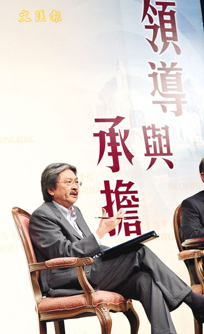 曾俊華昨日出席中大逸夫書院嘉賓講座,以《務實領導》為題發表演說,吸引逾2000人參與。