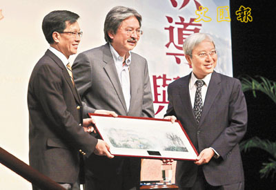 ■中大負責人向曾俊華致送紀念品。本報記者潘政祁 攝