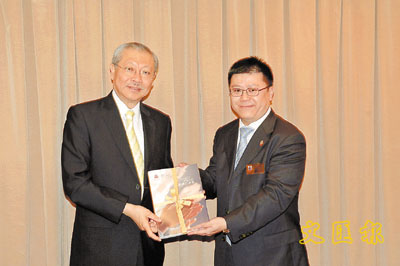 ■博愛醫院董事局主席林建康致送紀念品予教育局局長孫明揚。