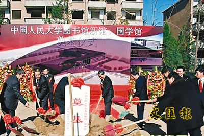 ■朱孟依(拿鏟子左一)為捐建的人大國學館奠基。