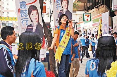 昨日,盧懿行在民建聯中西區支部副主席陳耀強及50多名的助選團的陪伴下,到選區爭取市民的支持。她說:「由外祖父母的那一代到現在的我,都是居住於西營盤。」一步步踏在西營盤路上,她流露出一種對這個社區根深柢固的感情。