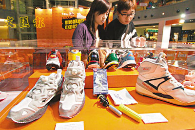 ■波鞋展展出「天價」波鞋(左),被炒至2萬元。本報記者潘政祁 攝