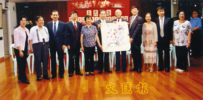 ■河北省政府代表向香港僑總贈送《紅梅圖》。