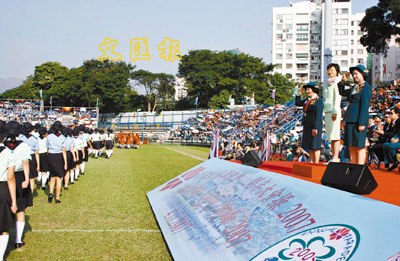 ■香港女童軍總會舉行周年大會操,檢閱隊伍走過檢閱台。本報記者沈清麗 攝
