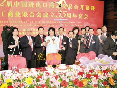 【本報訊】香港嘉應商會會長曾智明日前率領一行14人代表團前赴廣州,分別應邀參加了廣州市工商業聯合會、廣州市總商會、廣州外商投資企業協會及廣州市民營企業商會聯合主辦的「慶祝第102屆中國進出口商品交易會開幕暨廣州市工商業聯合會成立55周年宴會」。