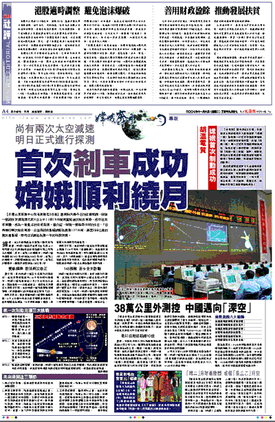 胡溫電賀 嫦娥首次制動成功