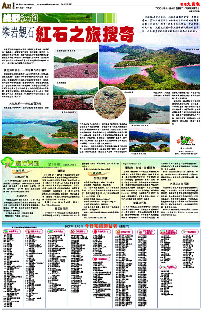 返回岸邊,在石灘上可找到不同種類的沉積岩碎石塊,奇特有趣,不妨細心觀察,但不要取走。當走在水閘堤壩上,俯望泥灘,發現許多黑色身體的玉足海參和飛白楓海星,這豐富的生態環境使紅石門仿似一個天然教室。回程的船上,斜陽晚照,波光粼影,別有一番景色。