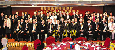 【本報訊】世界廣西同鄉聯誼大會第13屆代表大會,日前在名都酒樓舉行歡迎宴,出席宴會的有來自美國、加拿大、阿根廷、日本、馬來西亞、泰國、台灣、澳門等國家和地區的廣西同鄉社團領袖百多人,場面熱鬧。立法會主席范徐麗泰、中聯辦主任助理王如登、立法會議員譚耀宗、民政事務總署副署長鄒耀南主禮。