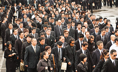 ■竹聯幫眾及社會人士大約1萬多人參加陳啟禮的喪禮。 法新社