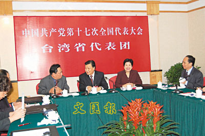 ■中共中央政治局委員劉雲山(中)在十七大期間代表黨中央看望台灣團代表。