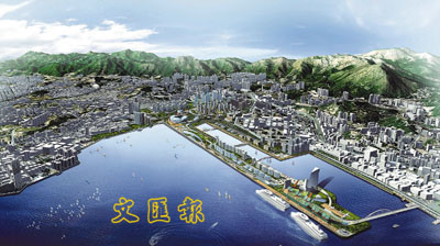 ■政府今日起為啟德郵輪碼頭展開為期約4個月的公開招標,預料首個泊位將於2012年投入服務。圖為郵輪碼頭電腦模擬圖。資料圖片