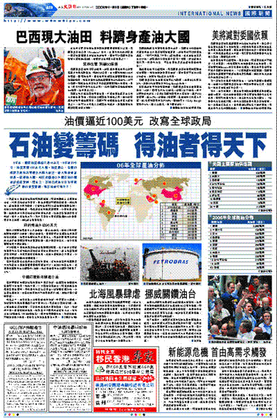 8年前,國際油價每桶只是16美元,8年後的今日,油價直撲100美元大關。油價高企,各國的經濟及政治話事權亦來個大執位,最大得益者當然是一眾產油大國,相反依賴進口外國石油的國家卻處處受制,簡言之,石油已成為左右全球政局的重要籌碼,得石油者可得天下!