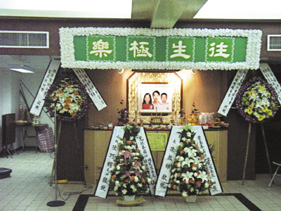 天水圍天躍h上月14日發生的精神病婦麥福娣綁起一對子女掟落街後,復跳樓自殺身亡,釀成3屍慘劇;3人的遺體前晚在殯儀館設靈後,昨日出殯,入土為安。