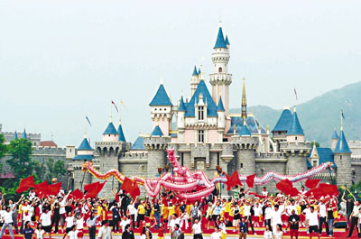■香港迪士尼樂園一名前清潔工人因收受利益被判監4個月。圖為迪士尼開幕時情形。資料圖片