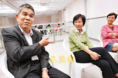 原籍福建的天章叔(左)親暱地稱呼歐陽寶珍作「阿姐」,他笑言許多福建人都好喜歡她,如小朋友有讀書方面的問題,也一定會找阿姐幫手,故他一定會多找福建同鄉支持阿姐。湯小姐(右)在一次跳舞活動上偶然認識歐陽寶珍,後來她更為對方擔任義工。湯小姐認為歐陽寶珍是真心為居民服務,因此願意全力協助歐陽寶珍。 本報記者劉國權 攝