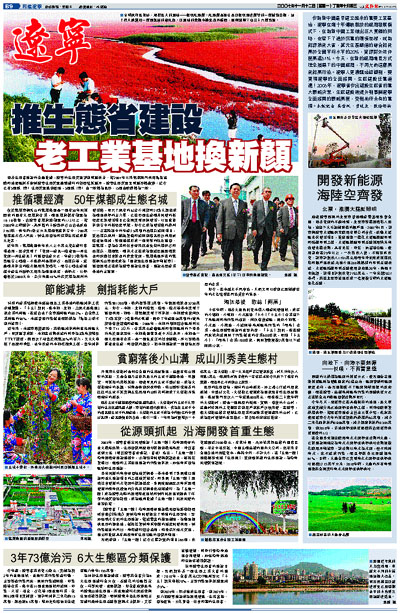 作為新中國最早建立起來的重要工業基地,遼寧在幾十年傳統粗放的經濟發展模式下,在為新中國工業做出巨大貢獻的同時,也留下了過於沉重的環境包袱,成為能源消耗大省,萬元生產總值的綜合能耗高於全國平均水平的20%,資源對外依存度高達51%。今天,在新的經濟增長方式理念指導下的中國經濟,不再允許這樣高耗能高污染。遼寧人更清醒地認識到,要實現遼寧的全面振興,生態建設任重道遠!2005年,遼寧省作出建設生態省的重大戰略決策,生態建設被提升到事關遼寧全面振興的戰略高度,受到前所未有的重視。