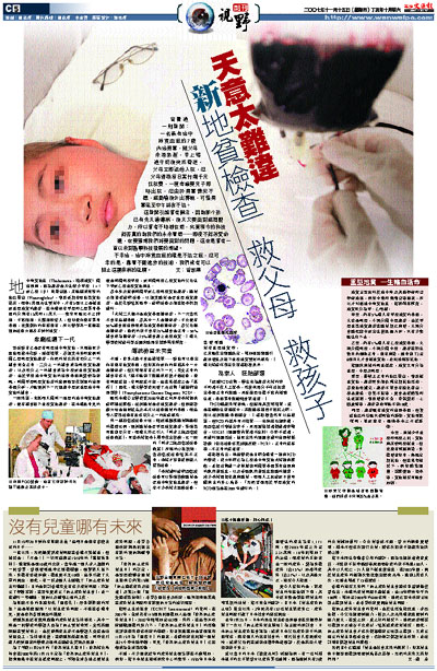 ¡@¦a¤¤®ü³h¦å¯g¡]Thalassemia¡A²ºÙ¦a³h¡^ÄÝ¿ò¶Ç¯f¡A¦]¬°±wªÌ¬O¤Ñ¥Í¯Ê¤Ö¥Ò«¬¡]£\¡^©Î¤A«¬¡]£]¡^¯]³J¥ÕÃì¡A¥¼¯à²Õ¦¨§¹¾ãªº¦å¬õ³J¥Õ¡]Haemoglobin¡^¡A¾ÉPªø´Á¦³·»¦å©Ê³h¦å¼xª¬¡A¦Ó¨C1¸UÓ·s¥ÍÀ¦¨à¤¤¡A¤~¦³5Ó¥H¤W¬OÄY«©Î««¬¦a³hªº±wªÌ¡C¦b¥»´ä±a¦³¥Ò«¬©M¤A«¬²§±`°ò¦]ªº¤À§O¦³15¸U©M41¸U¤H¡X¼Æ¦r¥i¯à¤ñ¤£¤WªÍÀù¡B¤l®cÀVÀù¡B¤j¸zÀù¯ëÅå¤H¡A¦ý§Y¨Ï§A¨S¦³²§±`°ò¦]¡A¤]Ãø«O§Aªº¦ñ«Q¨S¦³¡A©Ò¥HÂå¾Ç¬É¤@ª½³£¦b¹w¨¾Àˬd¤è±µÛ¤â¹ï¥I¦a³h¡C