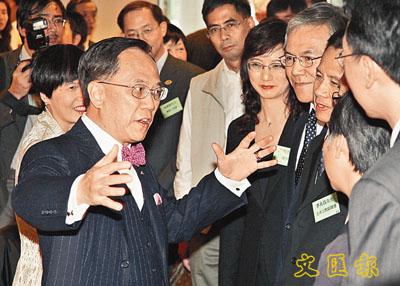 ■曾蔭權昨日百忙抽空出席酒會,向獲獎公務員道賀,與大家相談甚歡。本報記者 曾慶威攝