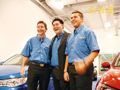 ■陳駿鴻(中)與兩位SUBARU車手合攝。