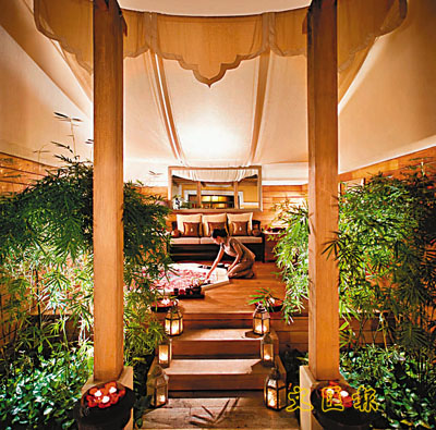 ■療理中心設6所水療護理室,每所均設私人戶外園林花園和按摩浴池。