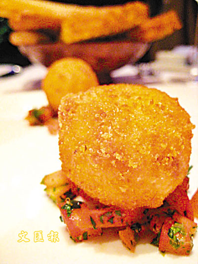 外皮鬆脆的丸子,內裡香軟可口,洋溢黑松露的香氣,加上底層的意式番茄汁,帶來清新味覺,恰巧平衡丸子的「熱氣」,兩者配合得天衣無縫。 (120元)