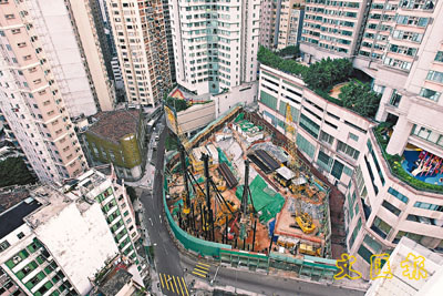 ■太古地產就西半山建54層豪宅的發展項目提出司法覆核,獲判勝訴。圖為該項目位於西摩道一帶的地盤,目前已開始打樁。 本報記者劉國權 攝