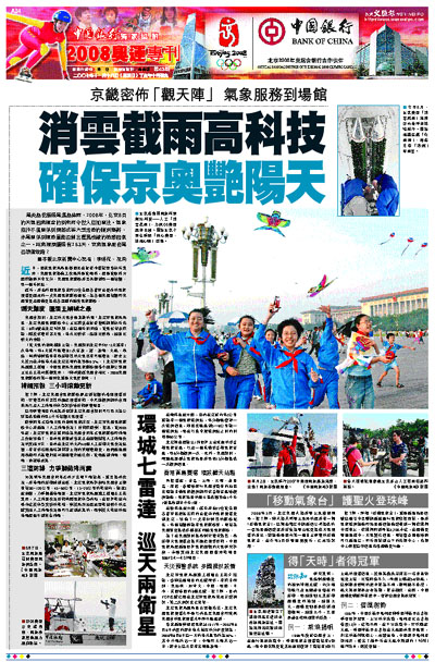 是炎熱乾燥還是濕熱陰雨,2008年,北京8月的天氣因奧運會的到來而令世人倍加關注。氣象條件不僅關係到開幕式等大型活動的順利舉辦,亦是關係到運動員能否創出優異成績的敏感因素之一。距奧運開鑼還有263天,京奧氣象服務是否準備就緒?