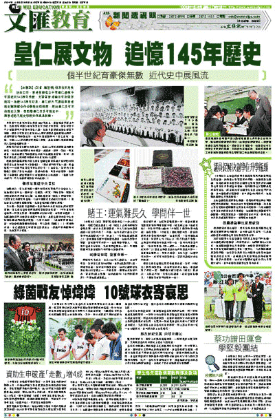 【本報訊】(記者 羅賀琪) 教育從來是長遠的工作,香港首間官立中學皇仁書院今年就迎來145周年校慶,見證著香港逾百年的教育歷程。為慶145周年紀念,皇仁破天荒獲邀與香港歷史博物館合作合辦歷史回憶展,展出皇仁多年來的歷史文物,並回顧皇仁百多年歷史中,與香港近代歷史發展如何息息相關。