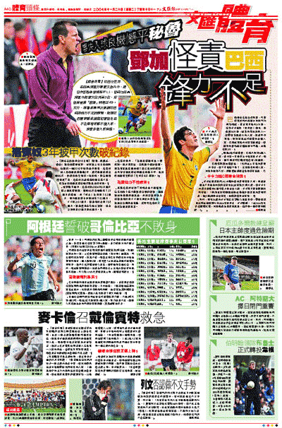 另外,現年25歲的卡卡坦言希望能以隊長身份,帶領國家隊出戰在祖國舉行的2014年世界盃。卡卡續稱:「在2014年我仍會繼續比賽,如果能成為國家隊隊長,這將是一個妙極的經歷。」 ■蔡明亮