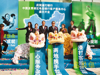 【本報珠三角新聞中心記者李昌鴻深圳20日電】渣打銀行中國及香港區電話銀行客戶服務中心今日在深圳揭幕,渣打銀行中國有限公司行長兼首席行政總裁曾璟璇出席揭幕儀式。該中心分別設於深圳福田中心區和羅湖區,總面積達8000平方米,預計年底將擁有超過600名員工。另外,渣打銀行是首家在深圳設立大型電話銀行客戶服務中心的外資銀行。渣打銀行(中國)個人銀行總裁葉楊詩明表示,未來有意進駐深圳市昨日啟動建設的金融中心基地。